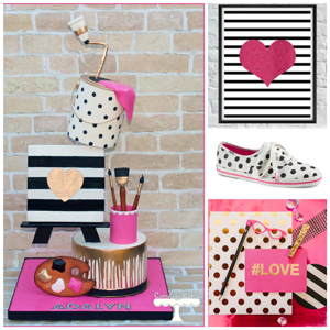 When I’m designing a cake for a customer, I typically follow their lead. If they send me invitations or party decor, I will almost always utilize that in my final design. If they send me general ideas, and nothing visual to use, then I typically browse invitations and clip art. I really like taking little elements from a lot of different things to create my cakes. I also have a list of techniques and designs that I would like to try, so I check that list to see if there is anything that fits nicely.