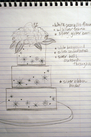 If I just can’t seem to see the final cake in my head, I will sketch it.