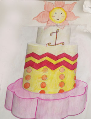 If I can visualize the cake in my head, then I typically do not sketch the cake. I write out a detailed design description for myself and the customer. If I just can’t seem to see the final cake in my head, I will sketch it. I just use a sketch pad, pencil, and colored pencils. This helps me visualize the cake, and then I will still write a detailed description of it. That way when I go to make the cake, if I have no idea what I just sketched, I can read about it. I think writing down the details of each cake helps me later on with a to-do list, shopping list, and setting a timeline. So I prefer to see the cake in writing, as well as have a general picture of it in my head moving forward.